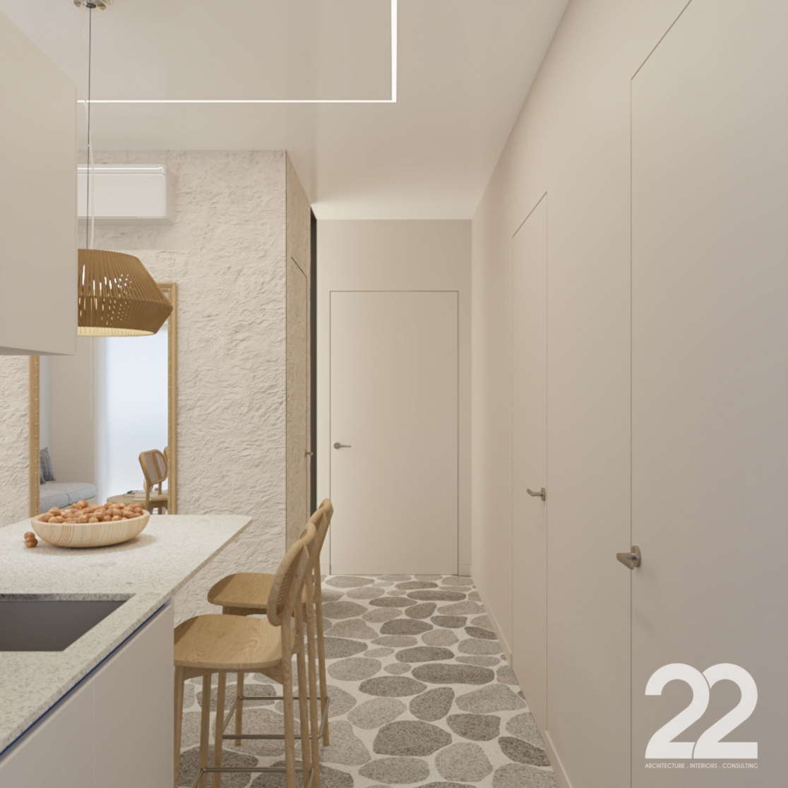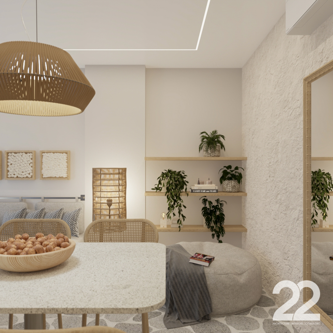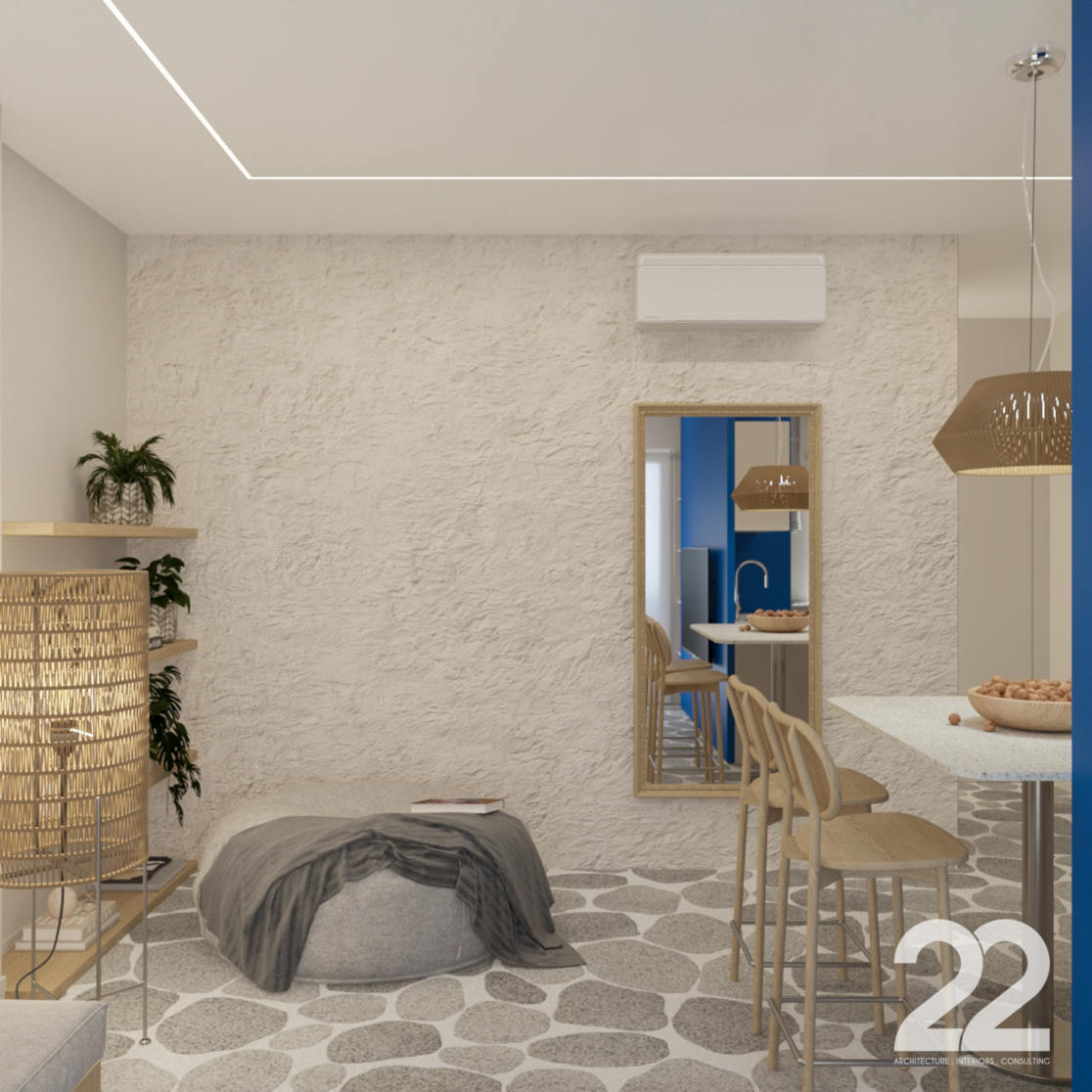 This is our take on a small beachfront apartment infused with natural colours, local materials and traditional craftmanship.